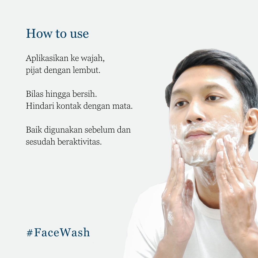Basahi wajah. Aplikasikan pada wajah secara merata. Bilas hingga bersih.
