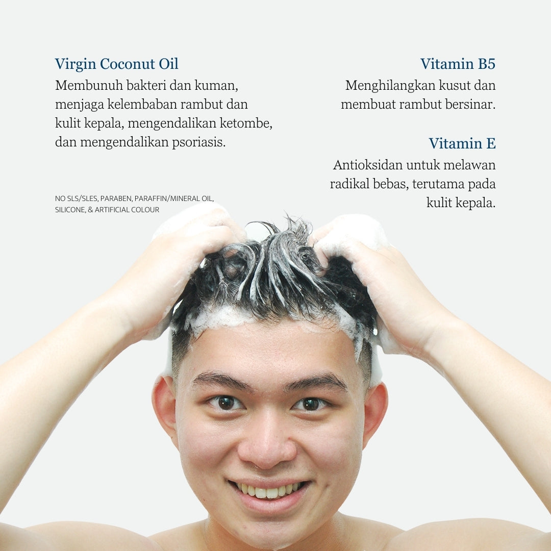 100% VCO Organik: Membunuh bakteri dan kuman, menjaga kelembaban rambut dan kulit kepala, mengendalikan ketombe, dan mengendalikan psoriasis.
