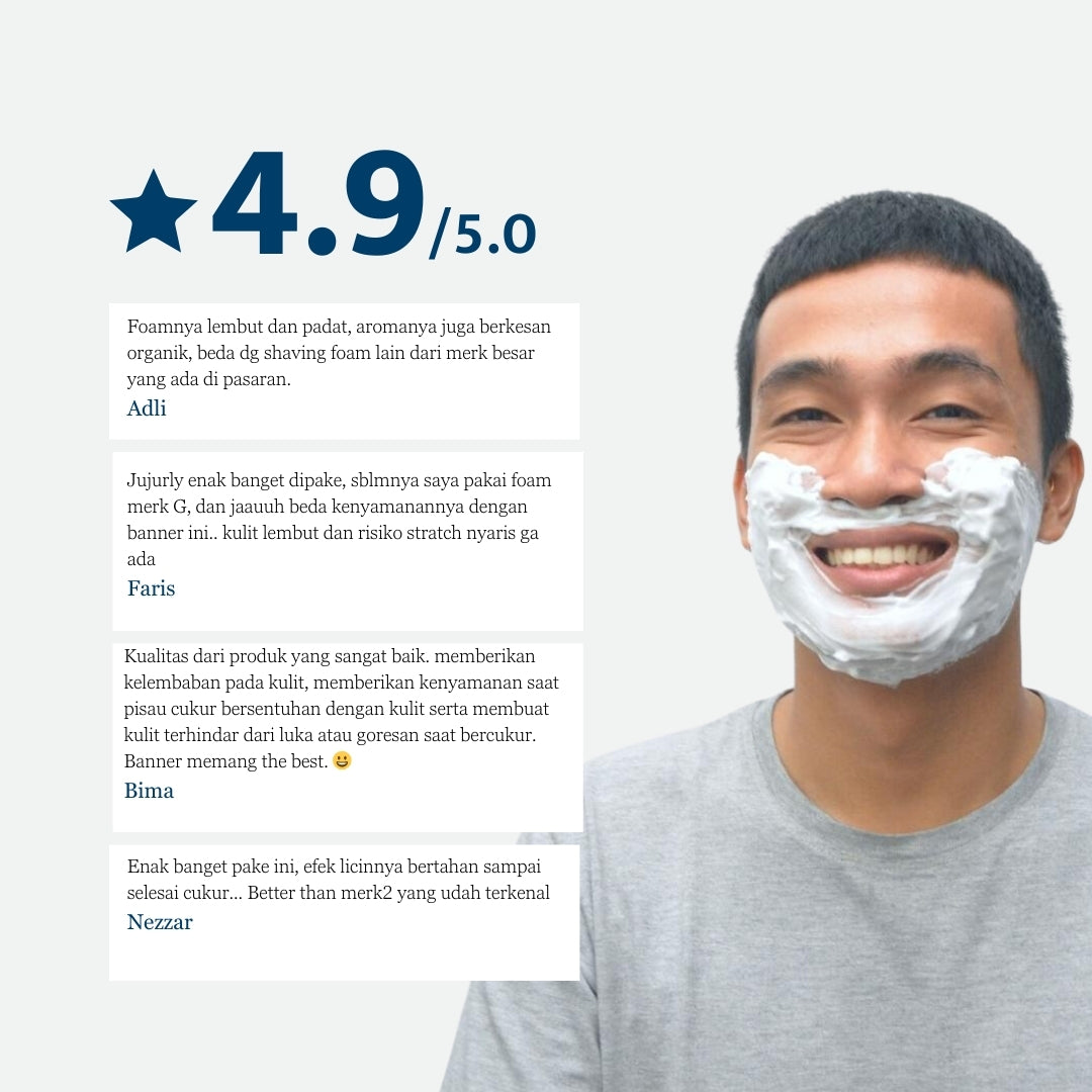 Cukuran lebih mulus bebas luka dengan Shave Foam dari Banner. Diperkaya virgin coconut oil (VCO) yang sangat baik untuk melembutkan dan melembabkan rambut wajah agar lebih mudah dicukur. Menggunakan botol non-aerosol yang menghasilkan busa yang lebih lembut dan efektif melindungi wajah saat cukuran agar tidak luka.