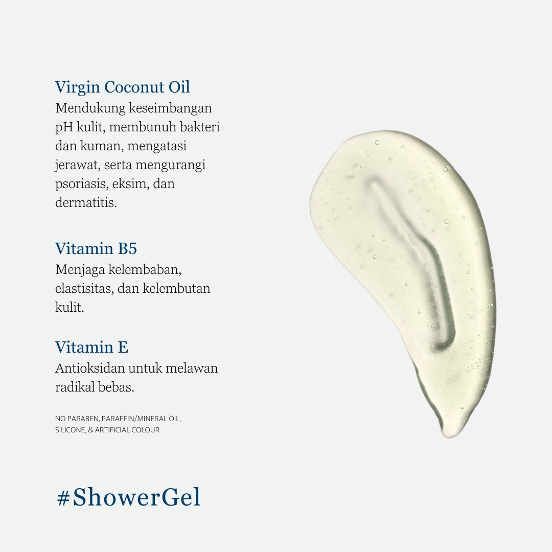 Diperkaya 100% virgin coconut oil (VCO) organik yang efektif membunuh bakteri dan melembabkan kulit. Memiliki formula ringan yang cocok digunakan oleh semua jenis kulit.